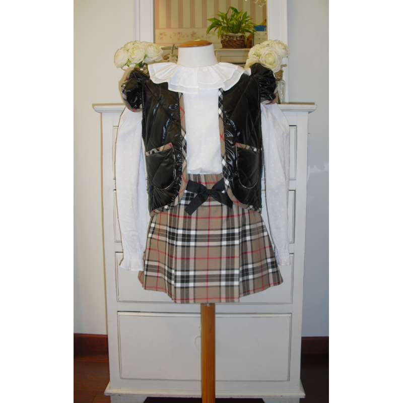 CONJUNTO BLUSA C/FALDA PANTALÓN CHALECO CUADROS BURBERRY MON PETIT