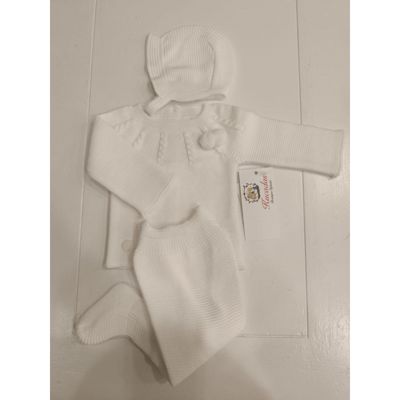 CONJUNTO P.P 3PIEZAS CANESÚ TRENZAS BLANCO PRIM BABY