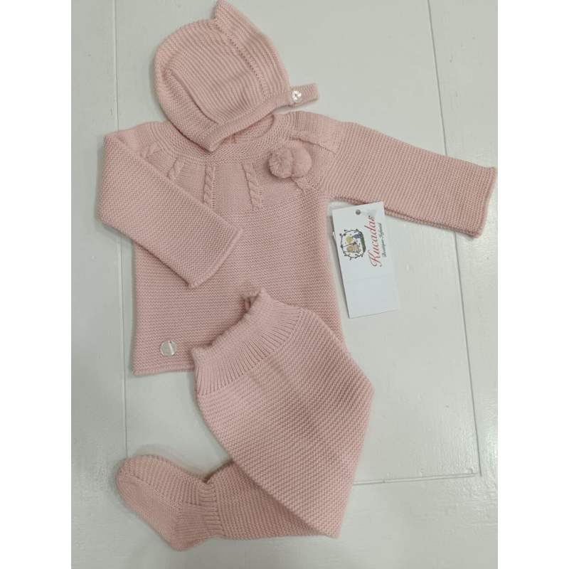 CONJUNTO P.P 3PIEZAS CANESÚ TRENZAS ROSA EMPOLVADO PRIM BABY
